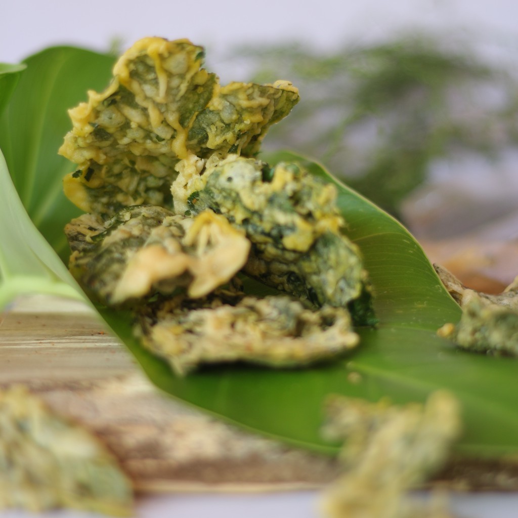Resep Keripik Bayam Tidak Berminyak! Keripik bayam yang sudah ditiriskan .